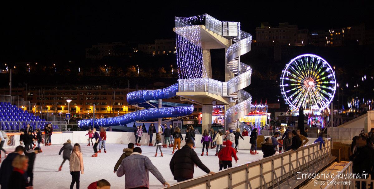 Stade Nautique Rainier III : patinoire ouverte du 5 décembre 2025 au 1er mars 2026. Tarif : 8 € (patins fournis) ; moins de 5 ans gratuit.